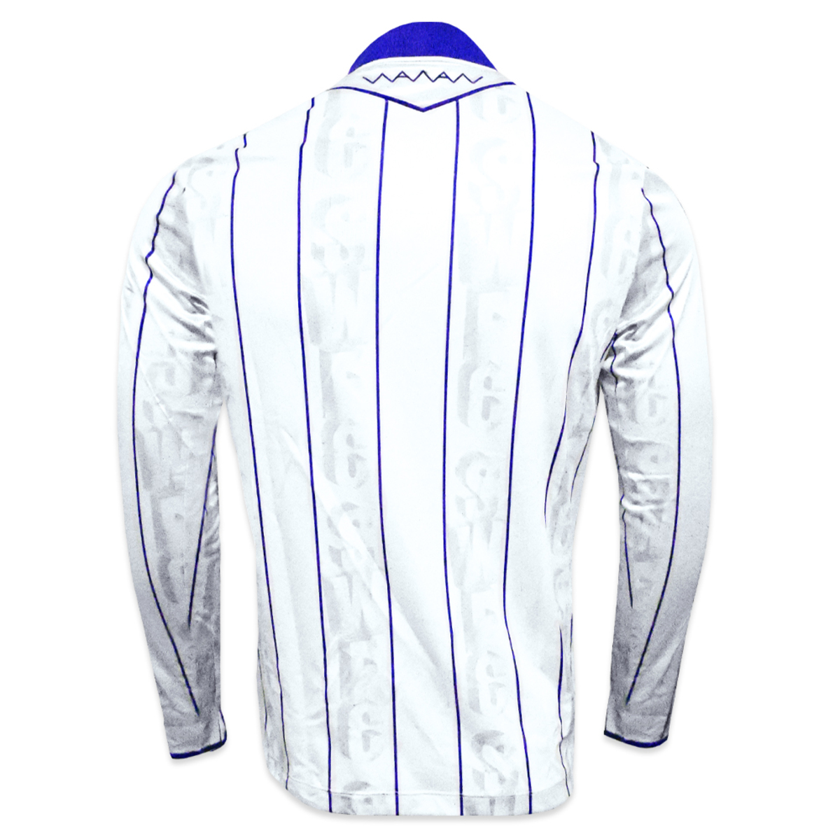 The Third Kit blends tradition with modern performance. Featuring a classic polo collar, the shirt pairs a crisp white base with fine blue pinstripes and detailing.